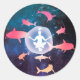 Pegatina Redonda Tiburones espaciales y arte de meditación