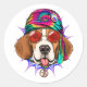 Pegatina Redonda Tie Dye Hippie Beagle Hippiness Peace Love Dog