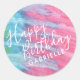 Pegatina Redonda Tie Dye Pink Feliz cumpleaños personalizado