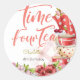 Pegatina Redonda Tiempo cuatro té, cuarto cumpleaños para los niños
