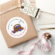 Pegatinas redondos "gracias" con un tema de punto. Una cesta de hilados, bolas de hilados con agujas de punto es la imagen en el centro de pegatinas blancos que vienen en dos tamaños. Texto personalizar que se recorre de arriba a abajo con el nombre de la tienda y "gracias por tu compra".