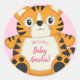 Pegatina Redonda Tiger Baby Shower Pink