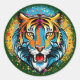 Pegatina Redonda Tiger Head Rainbow colors paint stains