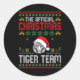 Pegatina Redonda Tiger Wearing Santa Hat Xmas Lights Merry Christma