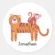 Pegatina Redonda Tigre con nombre personalizado lindo con mono en l