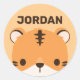 Pegatina Redonda Tigre lindo con nombre personalizado