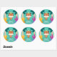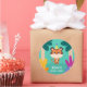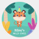 Un tigre lindo en la jungla sostiene un quequito en estos adorables pegatinas de la fiesta de cumpleaños Wild One. COINCIDIENDO con los artículos de nuestra tienda.