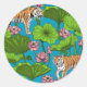 Pegatina Redonda Tigres en el estanque rosado de loto