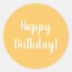 Pegatina Redonda Tipografía blanca amarilla feliz cumpleaños