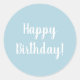 Pegatina Redonda Tipografía blanca azul feliz cumpleaños