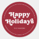 Estas divertidas y elegantes pegatinas de Navidad dicen "Felices Fiestas" en tipografía linda retro boho blanco sobre un fondo rojo festivo.