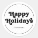 Estas divertidas y elegantes pegatinas de Navidad en blanco y negro dicen "Felices Fiestas" en una tipografía de boho retro lindo, negro sobre un fondo blanco moderno.