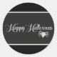 Feliz tipografía de Halloween con fondo negro con una araña colgante.