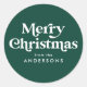 Pegatina Redonda Tipografía Retro Verde Feliz Navidad