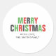 Pegatina Redonda Tipografía roja y verde para "Feliz Navidad"