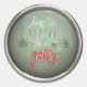 Fun "Tis The Season To Be Jolly" quote text written in typography on a sage green background, with a faux shiny silver border.