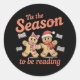 Pegatina Redonda Tis The Season To Be Reading Gingerbread Christmas