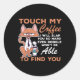 Pegatina Redonda Tócame mi café y te daré una cachetada tan fuerte