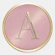 Pegatina Redonda Todas las iniciales Monograma dorado en rosa polvo