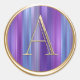 Pegatina Redonda TODAS LAS INICIALES Monograma Oro Bandas Azul Púrp