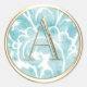 Pegatina Redonda TODAS LAS INICIALES Monograma Oro Pluma turquesa