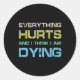 Pegatina Redonda Todo duele y creo que me estoy muriendo.
