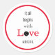 Pegatina Redonda Todo empieza con amor gracioso Personalizado de te