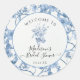Pegatina Redonda Toile Azul y Blanco Elegante Floral Desayuno Nupci