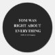 Pegatina Redonda Tom Was Right