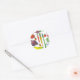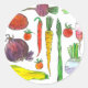 Un pegatina colorido y luminoso decorado con una cosecha de verduras como tomates, zanahorias, espárragos y más dibujado en pluma y tinta, pintado con acuarela de fondo blanco. Diversión para su diario de jardín, correo, manufactura y más! El diseño es de mi libro de colorear llamado "Lila's Garden: A cottage garden colororing book que se puede encontrar en Amazon.