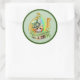 Aquí hay un divertido pegatina del Día de San Patricio que presenta a un naranja de tomate vestido con un sombrero de un leprechaun sentado al final de un arco iris dentro de una herradura dorada con piedras de champú que se pueden utilizar en tarjetas, regalos y favores de fiesta!