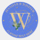 Pegatina Redonda Topografía azul real Monograma Oro W Boda