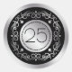 Pegatina Redonda Torbellino negro plateado 25° Aniversario del Boda