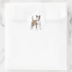 El diseño del Bull Terrier inglés presenta un Bull Terrier blanco y romano en una posición clásica de tres cuartos.