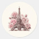Pegatina Redonda Torre Eiffel de París y rosas rosadas