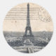 Esta antigua postal ofrece vistas panorámicas a la Torre Eiffel. Esta postal de 1912 está amarillenta con la edad y lleva el sello y el sello que está casi despegado.