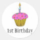 Adorable quequito con una vela en ella. Perfecto para saludos de tarjetas de cumpleaños, invitaciones para fiestas de cumpleaños para cada edad y primer cumpleaños