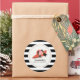 Esta etiqueta elegante y con estilo para despedida de soltera presenta un sombrero rojo de estilo derby con rosas y un lazo/cinta negro sobre un fondo blanco con rayas negras. Personalice según sus necesidades. Puede encontrar más productos relacionados en mi tienda.