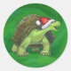 Pegatina Redonda Tortoise en Santa Hat en Green