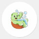 Pegatina Redonda Tortuga bañándose con espuma