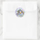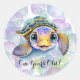 Pegatina Redonda Tortuga con burbujas primero. Fiesta de cumpleaños