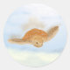 Tortuga marina marrón de dibujo digital nadando cerca del fondo arenoso del océano, con la luz del sol de verano filtrándose a través del agua azul y clara sobre ella. Diseño de diseño con una temática cálida de playa tropical de color pastel y arena. ¡Trae los trajes de baño y las tubos de buceo!