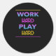 Pegatina Redonda Trabajar duro jugar tan duro trending Classic