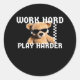 Pegatina Redonda Trabajo duro jugar duro - Teddy Bear Classic