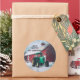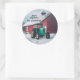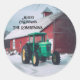 Pegatina Redonda Tractor verde y granero rojo