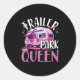 Pegatina Redonda Trailer Park Queen Funny Camping Pink Trailer Cara