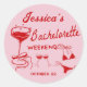 Pegatina redonda clásica de traje de baño para despedida de soltera con cóctel rojo en la playa