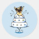 ¡Los cumpleaños, fiestas y duchas serán mucho más divertidos con este bonito diseño! Un perro Pug sale de una tarta blanca estratificada en este ilustracion original de tinta y lápiz.