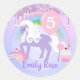 Pegatina Redonda Tratamientos de unicornio malva y blanco