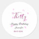 Pegatina Redonda Treinta años purpurina rosa estrellas negro 30 fec